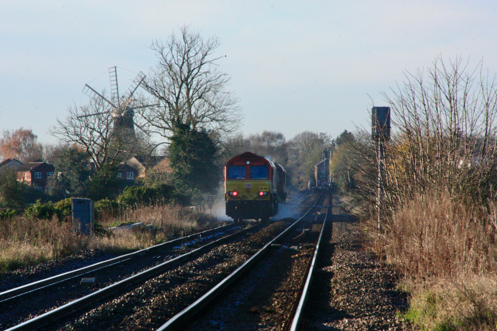 Having been lucky enough to see another NR test train, the Class 37-powered Ultrasonic Testing Unit (UTU) at Skegness in October, my main aim this time was to photograph a different type of test working passing both the down distant signal, which is only pulled off for trains not calling at Heckington, and the up distant signal some way east of the station.