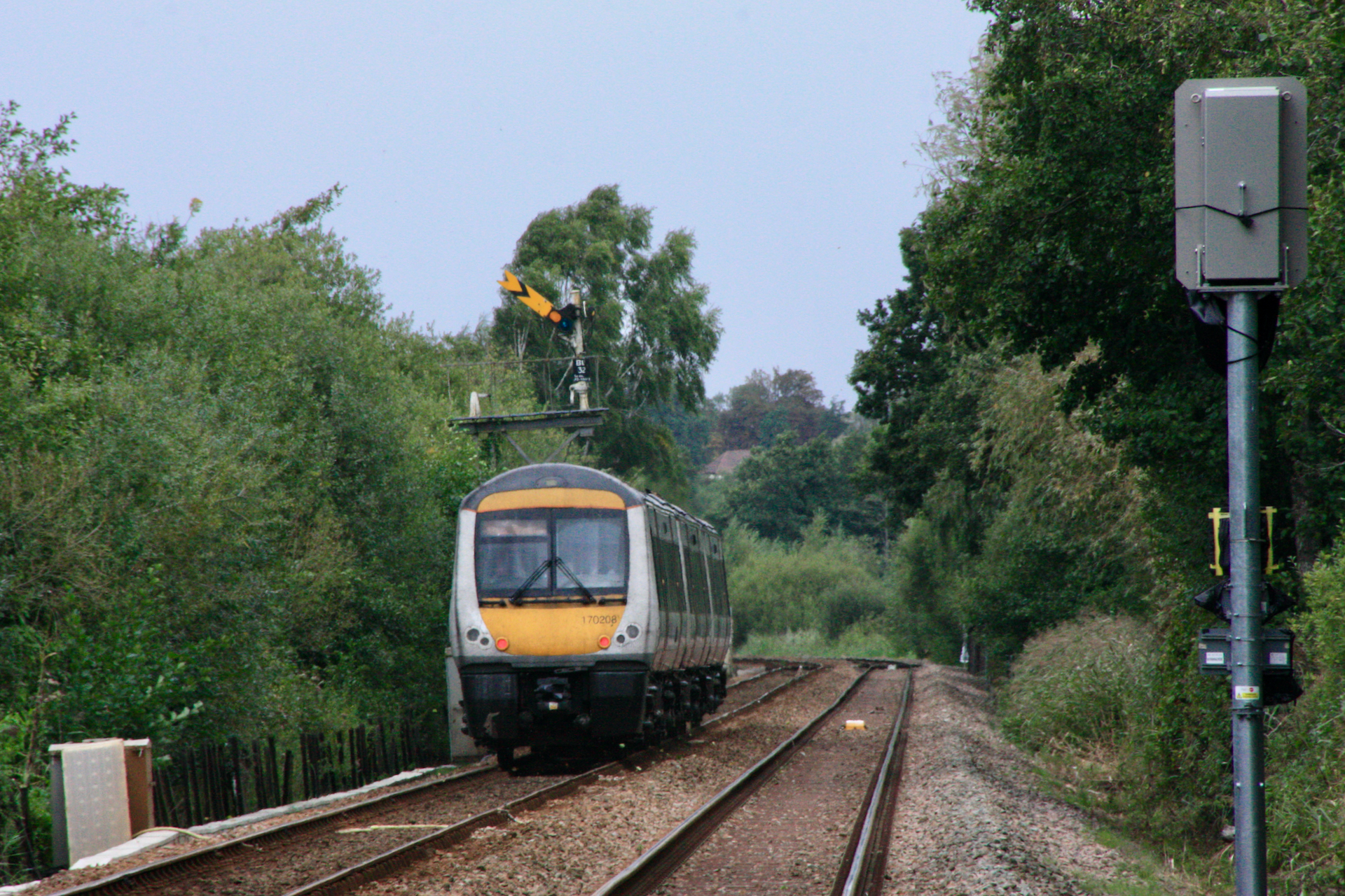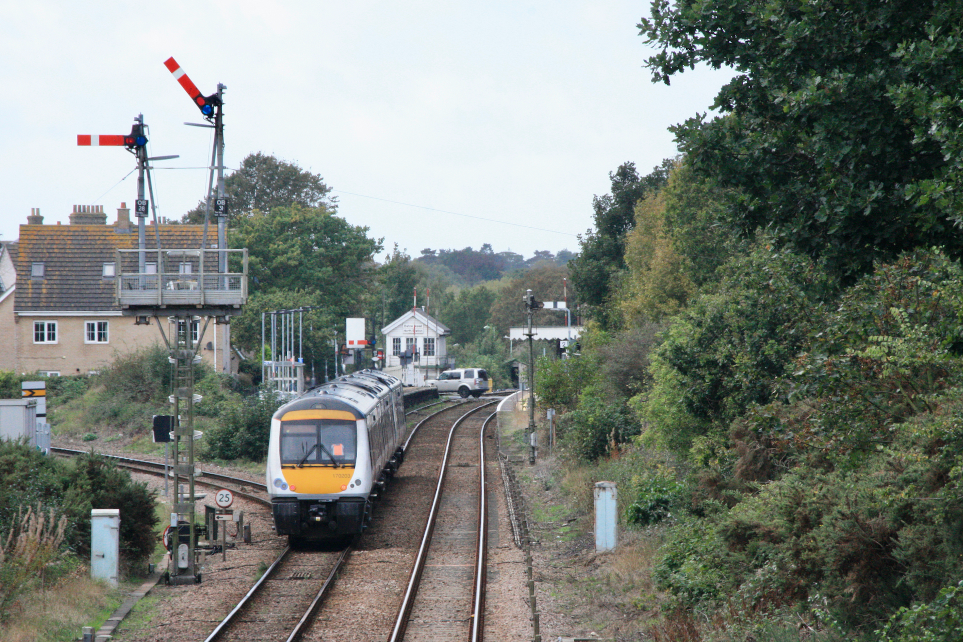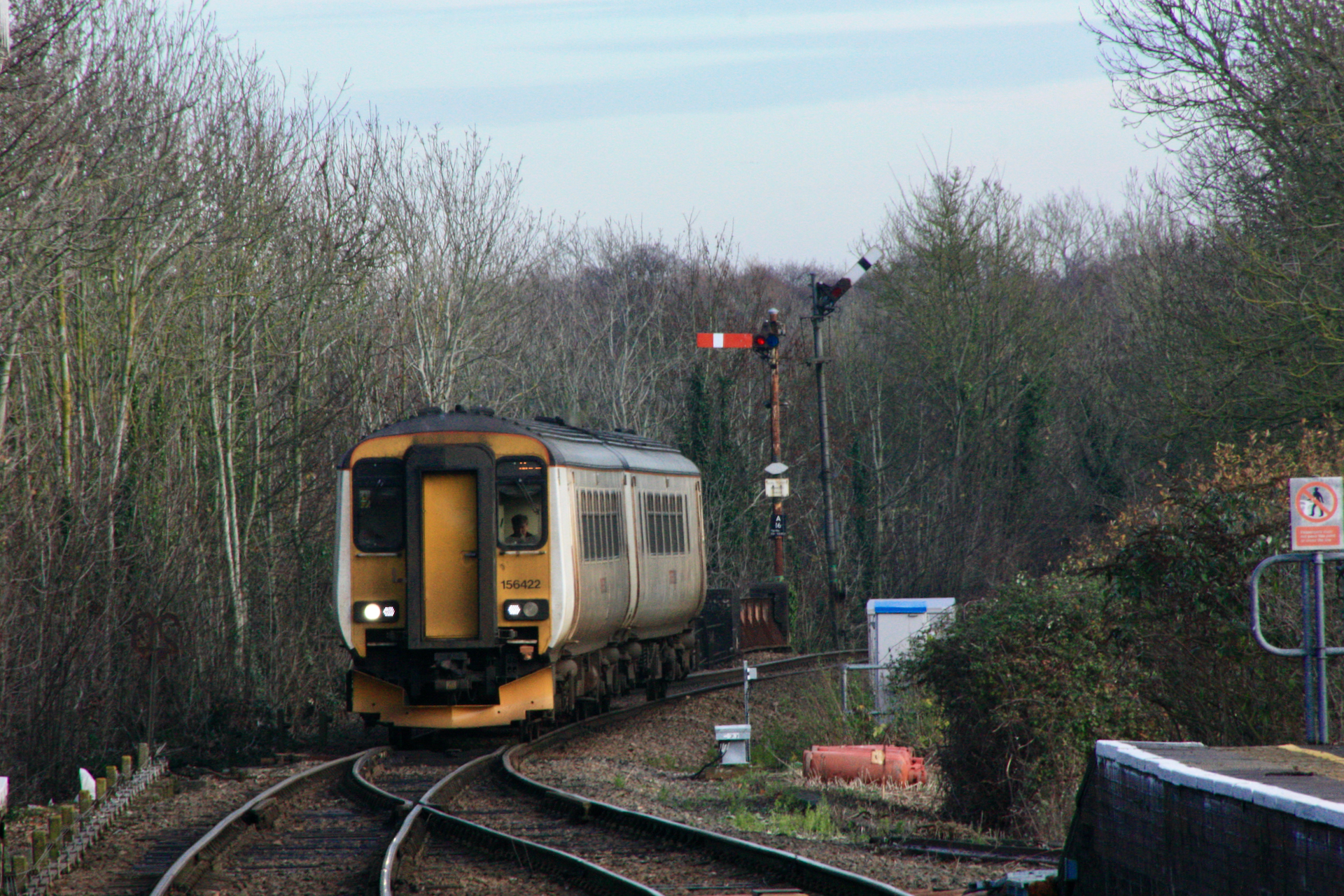 A brisk 15-minute walk from the station, and then down a muddy track, signed as the Angles Way, proved well worth the trek. Looking back towards the station there was a view of down section signal SB10, with the up outer home (SB13) in front of a sighting board visible just beyond – a signal almost impossible to see from the station platform.