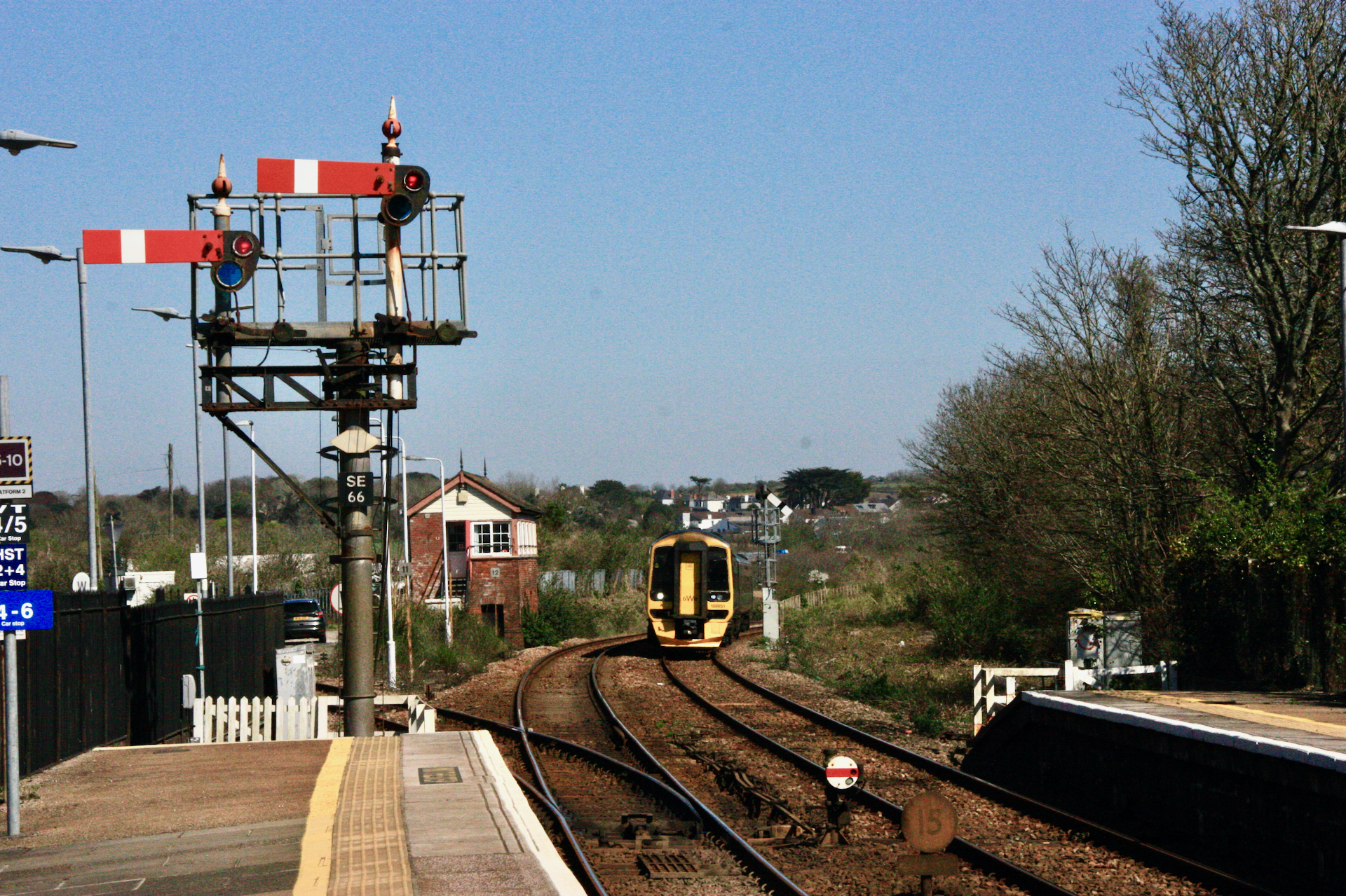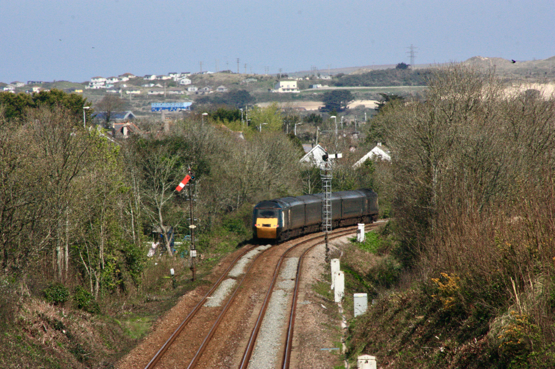 From the remote over-bridge on Rosengrouse Road there is a chance to see trains passing the final two and Britain’s most southerly semaphores, namely the St. Erth down section signal SE7 and up outer home signal SE68.