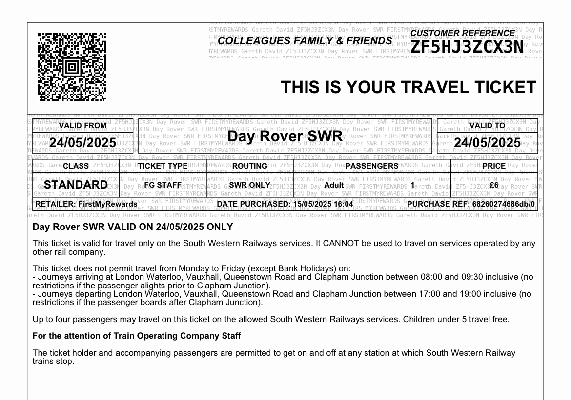 Over the past five years a major benefit for me of working part-time for a FirstGroup company has been an annual allocation of cheap day rover tickets that are valid on any of the First rail operations and, importantly for me, SWR.