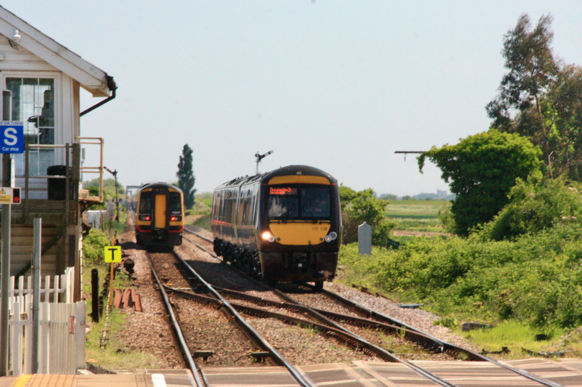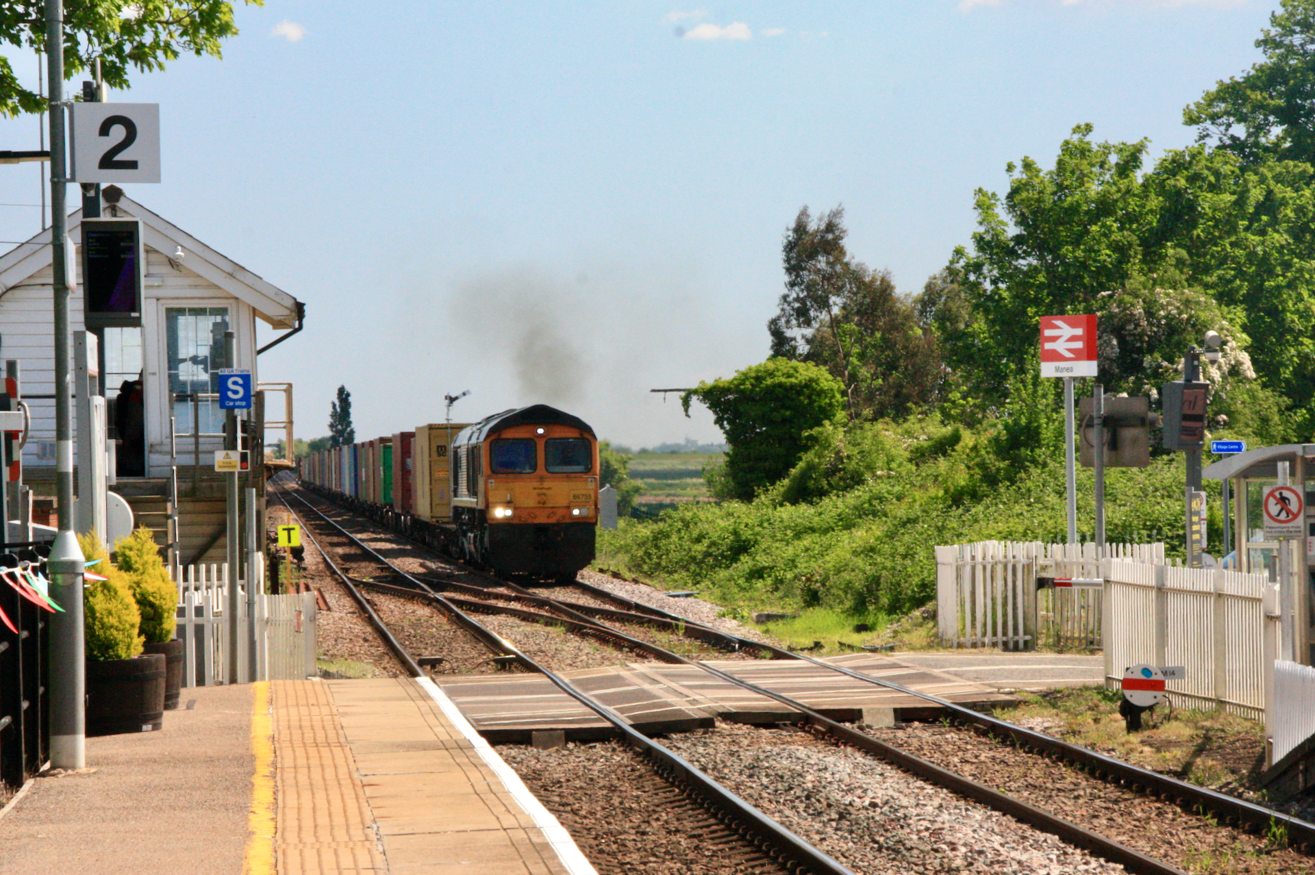 What makes Manea and the Peterborough-Ely route particularly interesting is the amount and variety of passing trains, which comprise Class 158/170 (EMR), class 170 (XC) and GA class 755-worked passenger services, along with a steady succession of Class 66-hauled freight traffic, most of which is running to or from Felixstowe Docks.