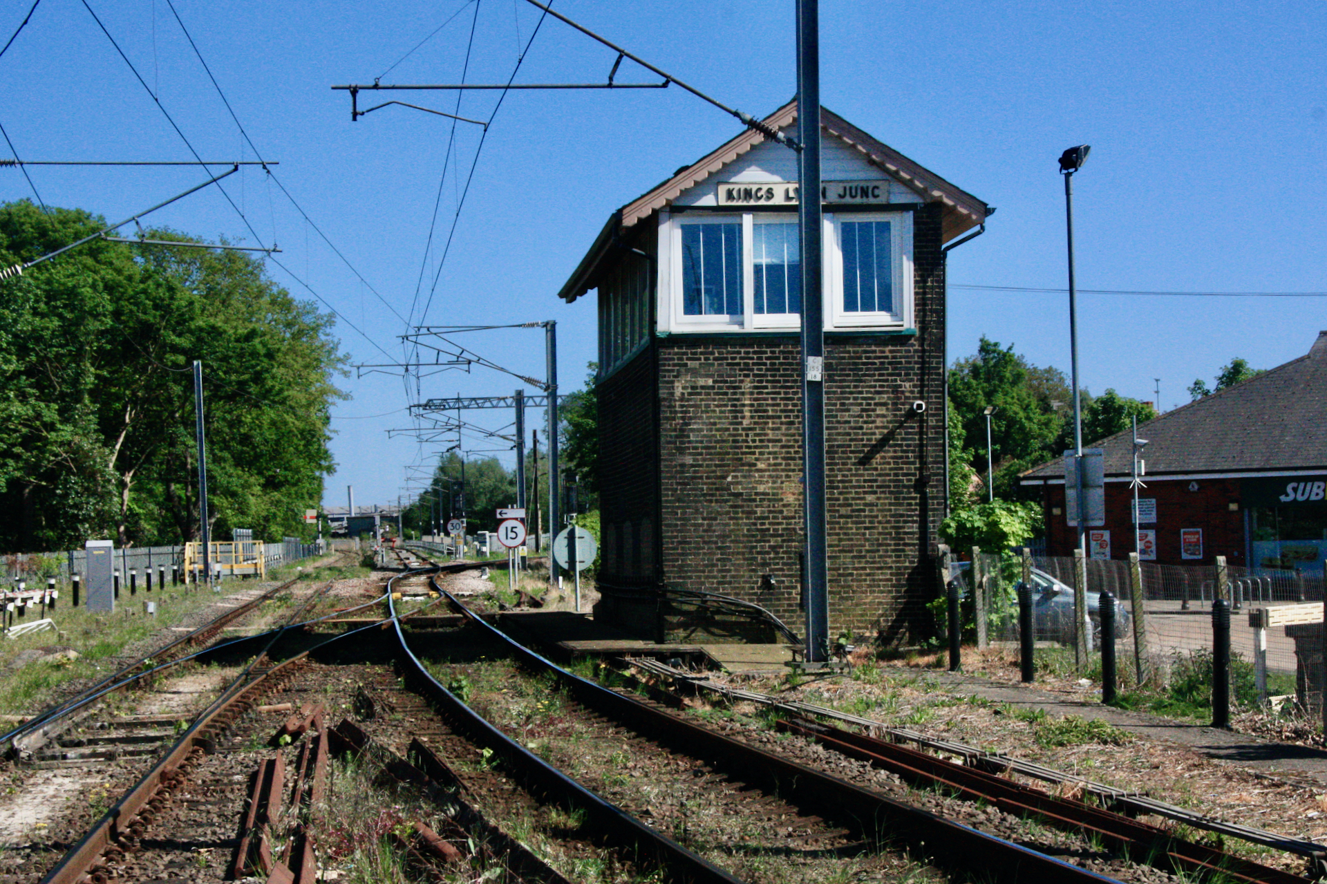 Getting a sight and photo of KL8 means a rather pleasant five-minute walk from King’s Lynn Station through a delightful park called “The Walks” just south of the station to a level crossing on Tennyson Avenue (B1144) from where there is a good view of the 1880-vintage signal box and signal KL8 alongside an electrified carriage siding, as seen below.