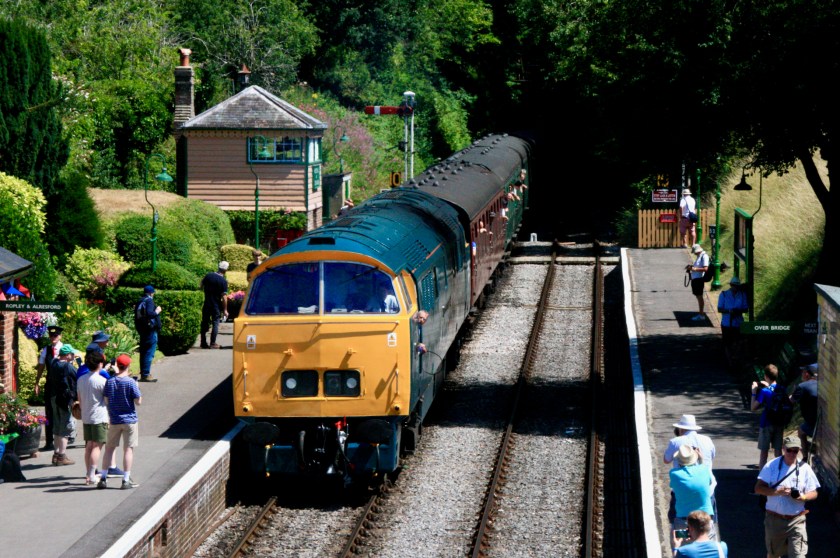 Glorious sunshine and guest appearances by some marvellous diesel-hydraulic traction are making for a highly popular gala weekend on the Alton-Alresford Watercress Line, where I have worked as a volunteer booking for the past decade.