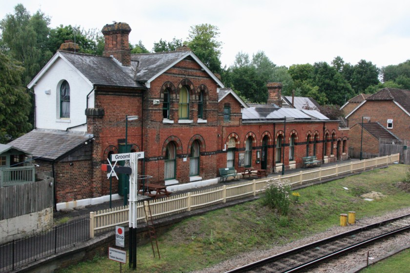 Alighting at the attractive new Groombridge station on my return journey towards Eridge, I headed south over the road bridge then took a path heading left that soon led to the field, from which there was an uninterrupted view of the line and the Groombridge down home signal, with sighting board behind it.