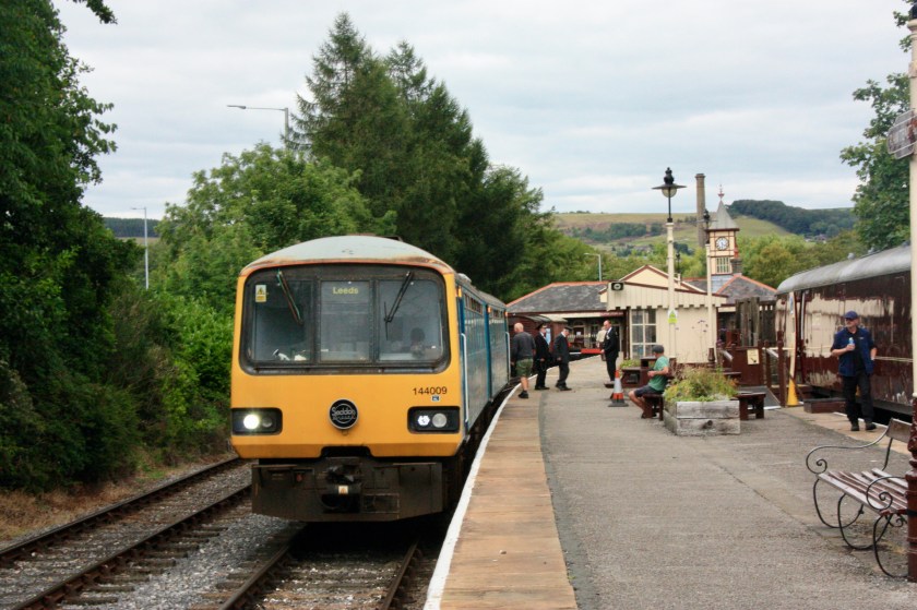 There is a remarkable variety of rolling stock on the ELR including a large diesel fleet, but what I had not reckoned on was making my first journey along the line in one of the much derided Pacer trains, in this case 144009 bearing the fictitious livery of Great Midlands Railway, following its appearance in the TV drama “Sherwood”.