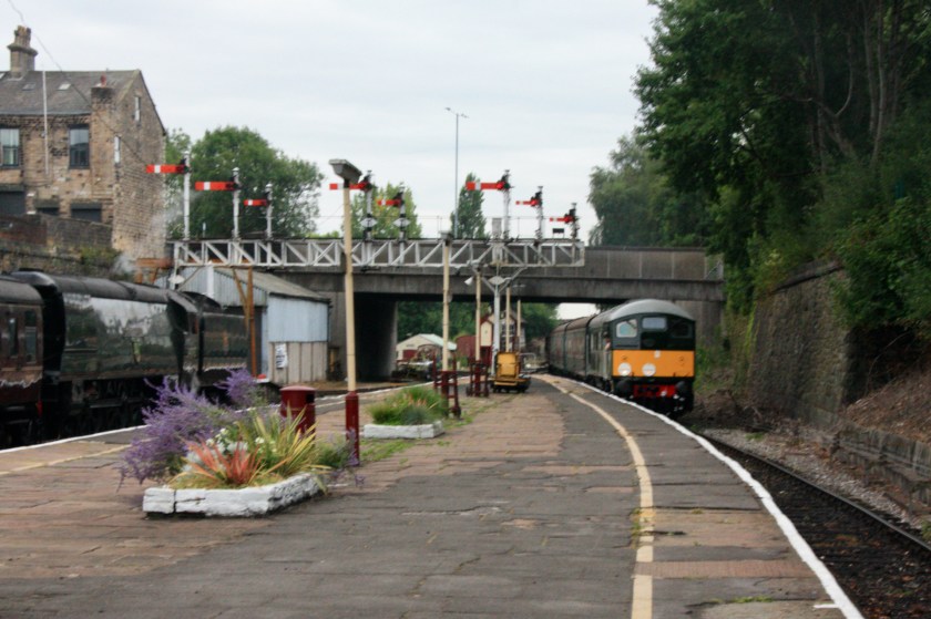 Having travelled the whole line by Pacer on 21 August, I had decided to travel the next day as far as the principal intermediate station and only other passing loop at Ramsbottom, where there looked like a number of potential spots to photograph trains in and departing from this rather attractive station.