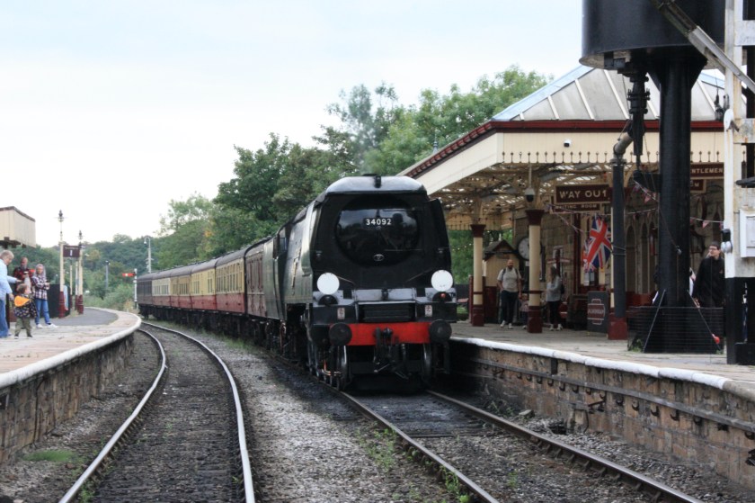But the steam power on both days of my visit (21/22 August 2025) was provided by un-rebuilt West Country Class Pacific (4-6-2) 34092 “City of Wells” with which I have a long history, having been photographed in its cab by my late father when it was in Woodham’s scrapyard at Barry in October 1966.