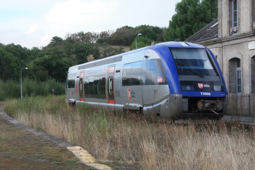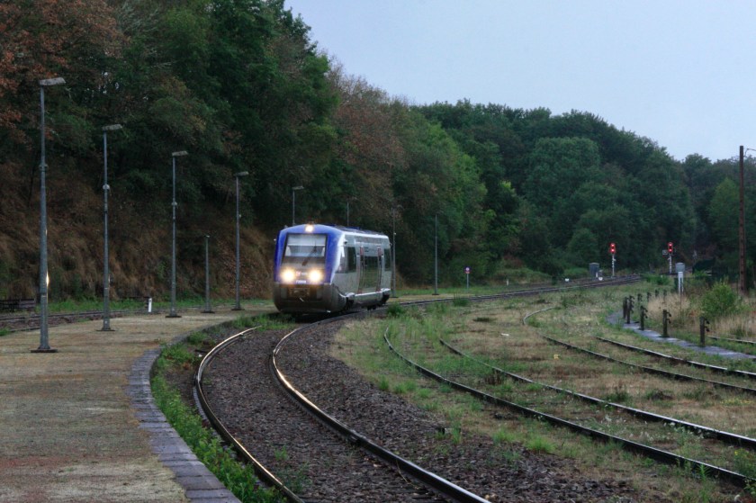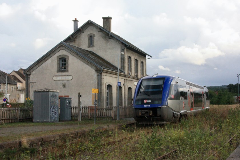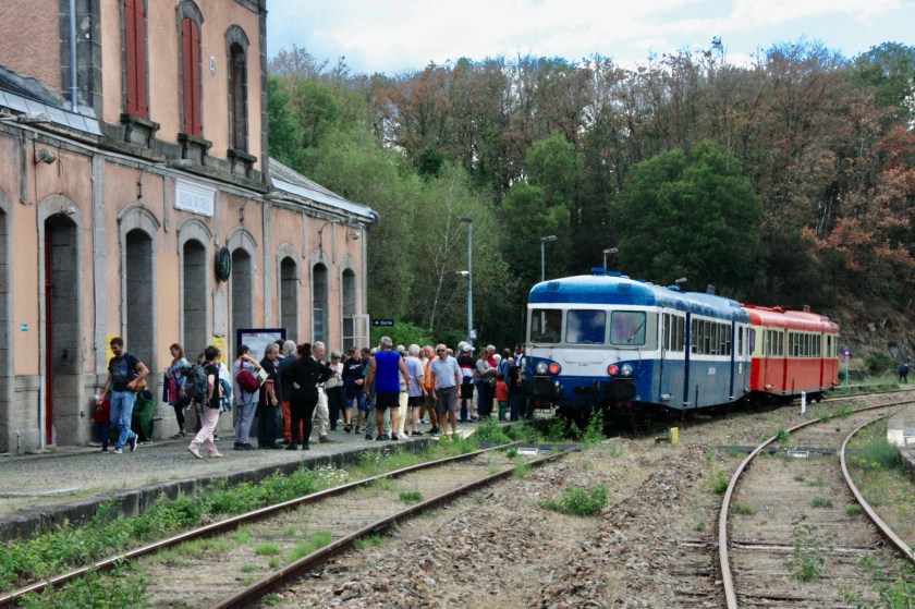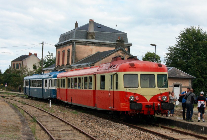 There were suspicious number of cancellations on the Felletin branch in the final days of its life. On 28 August the 13.01 from Limoges and 16.42 ex-Felletin was cancelled to provide a path for the last working by the historic railcars, but on 29 August the 06.23 Felletin-Limoges and 13.06 return were both cancelled, meaning that the unit which had arrived at 19.10 the previous evening spent all day at the doomed terminus before returning to Limoges (29 August) at 16.42.