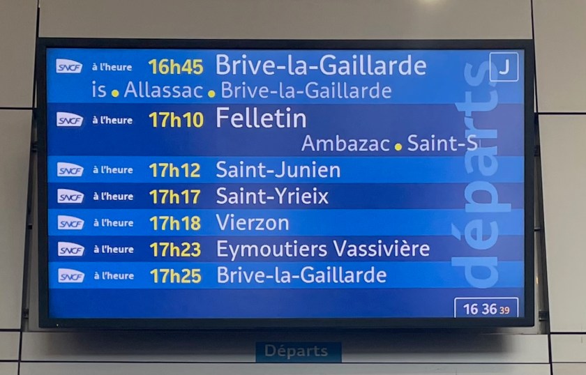 Taking full advantage once again of my Nouvelle-Aquitaine “Carte+” card (offering 50% off local TER fares for one year at a cost of €29.00) I more than recouped the cost of the card with my first journey (on 27 August 2025), having flown from Gatwick to Bordeaux, travelling from Bordeaux St. Jean to Limoges Bénédictins station, then on the 17.10 service to Felletin, for a fare of €30.20.