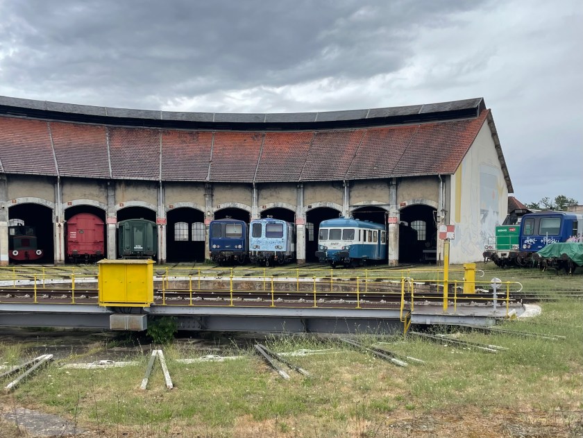 Montluçon is a sizeable town that is served by a large five-platform station and fairly sparse regional services mainly provided by the Auvergne-Rhône-Alpes region, with the exception of the twice-daily Limoges service. There is a fine preserved roundhouse not far from the station (as seen above) with a collection of historic railcars, including a couple of examples of the X2800 series I was travelling on the previous day.