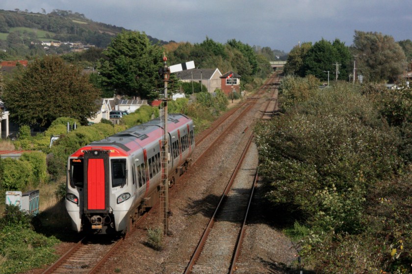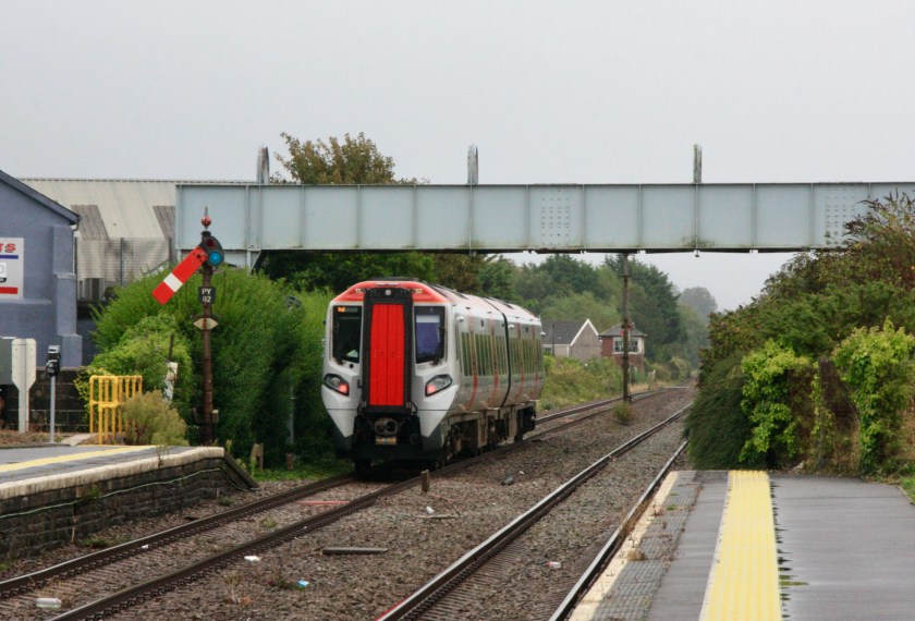Highlights of my short visit there in fast-changing weather conditions were 800027 making the only daily GWR call in the up direction with 1L12 from Carmarthen (07.23) to London Paddington and another sighting of 150267, which was returning from West Wales with 2B52 from Pembroke Dock (07.07) to Cardiff Central.