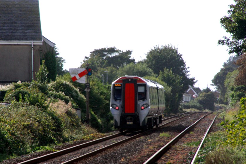 My early morning plan (11 September 2025) to photograph the eastbound oil train was sadly thwarted by the gloom and by the appearance of GWR 800027 with a delayed empty stock working from Swansea to Carmarthen, after which I took a short trip to Ferryside for a final look at its signal box and semaphores.