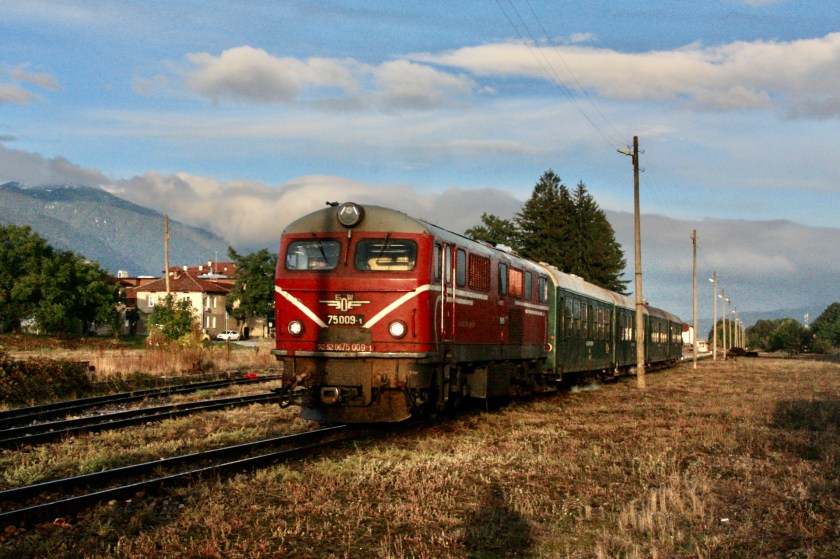 My second day (9 October) and an early start on the Vihren service (05.02 ex-Velingrad) meant I was at Bansko by 08.07 to photograph its departure for the terminus at Dobrinishte and later its arrival after working the short Pirin suburban service from the next station back down the line, Razlog, before joining it to get to the end of the line at Dobrinishte.