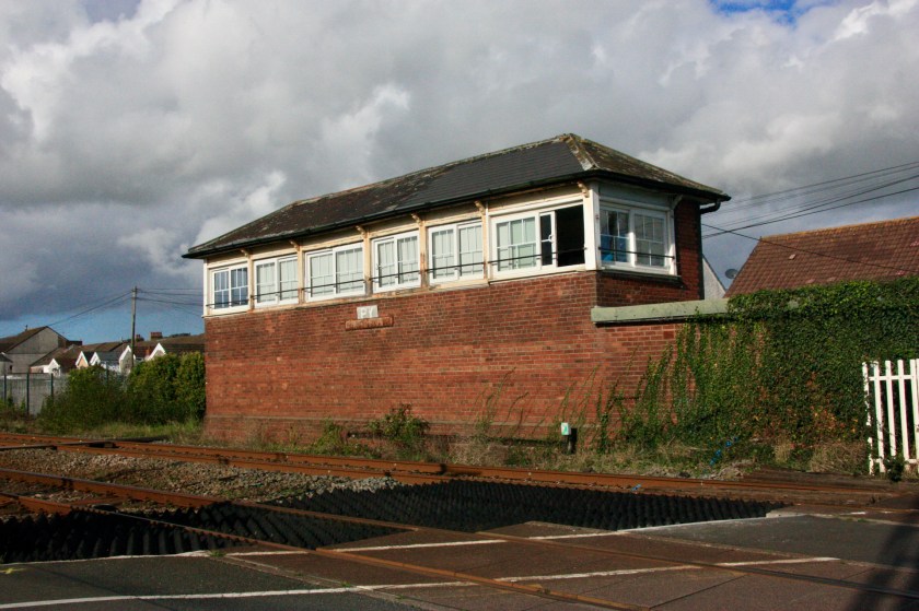 That spot on the Burry Port by-pass at what is called New Road Tunnel gives a fine but distant view looking back towards the station and signal box, along with three of the five semaphore signals controlled by the box – down home PY7, up inner home PY81 next to the box and down starter PY9 between the two running lines.