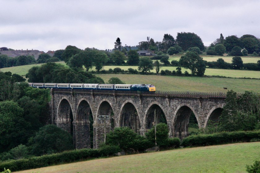 Mazey Day in Penzance is the perfect excuse for a return to the Royal Duchy, so on 28 June I travelled down to Liskeard in order to capture shots of the day’s two special trains crossing the impressive Moorswater Viaduct. My pick from that day shows D1015 Western Champion crossing the viaduct with 1Z32 from Dorridge (05.03) to Penzance.