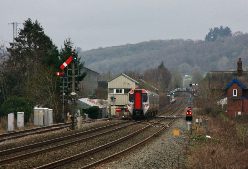 That left two loco-powered workings passing during the three hours I spent at Craven Arms, with 67008 propelling set HD02 on 1V39 from Manchester Piccadilly (10.30) to Cardiff Central and 67015 pushing set HD05 with 1W59 from Cardiff Central (12.54) to Manchester Piccadilly.