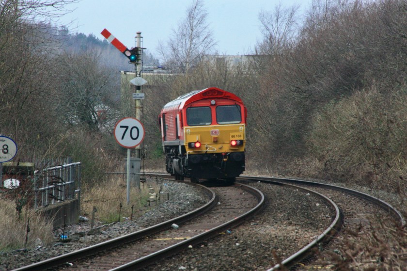 Besides the Class 222 training runs there was no other non-passenger activity to savour at Longton on 9 February, apart from DB 66108 passing light engine at 12.30 with 0D01 from Belmont Down Yard (Doncaster) to Crewe.