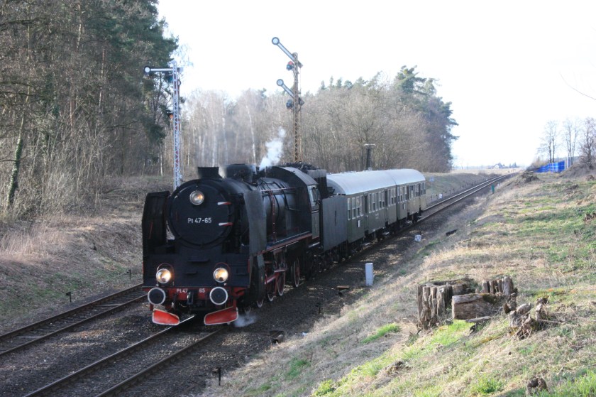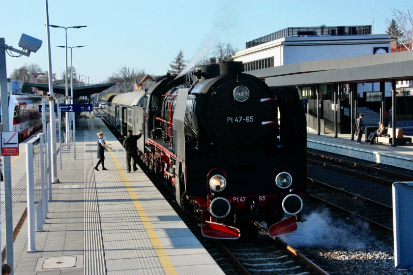 Zbaszynek enjoys regular calls by Berlin-Warsaw expresses, but connections into and out of the weekday steam service remain poor. Anyone from Berlin wanting the steam service would need to take EC47 from Berlin Hbf (11.52) which gets to Zbaszynek at 13.50, almost two hours before the steam departure, with the following EC49 arriving at 15.50, just 13 minutes after the steam departure.