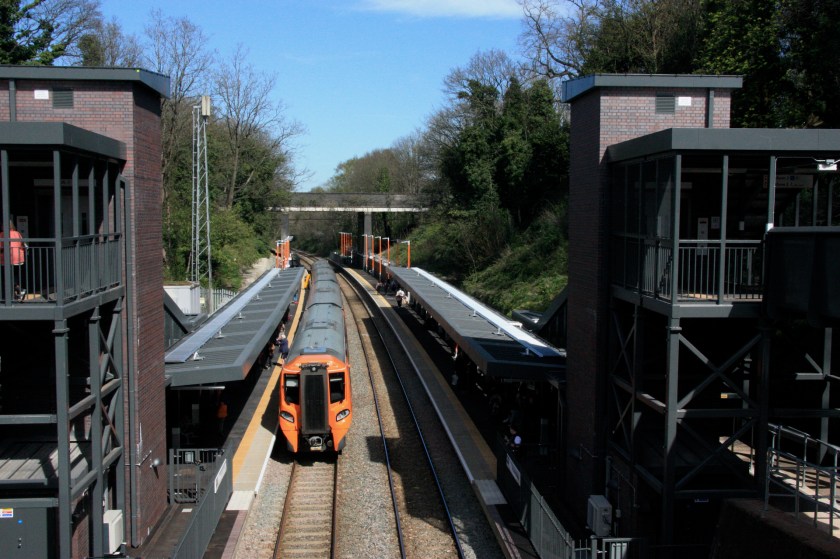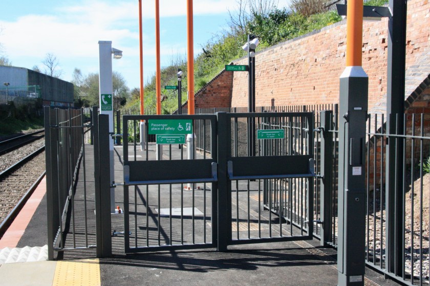 The three new stations all seem well-designed, with accessible lifts, cycle racks and lengthy shelters on each platform. They are, however, unstaffed, which probably accounts for each having a feature I have not encountered before – an enclosed space at the end of each platform called a “passenger place of safety” that is equipped with an emergency help point, as seen below.