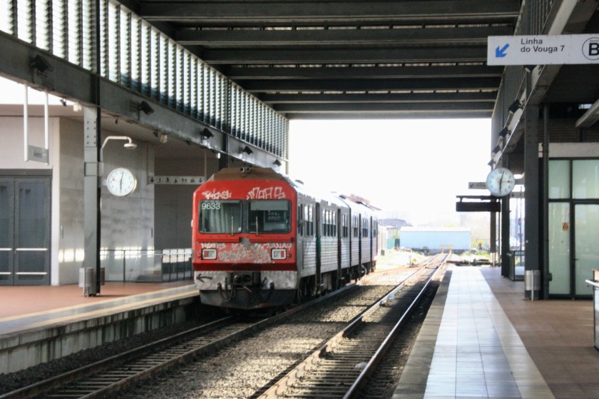 For my first trip on the Vouga system I joined a huge crowd of school children and others on a short journey to the first of the three passing places on the route and a place called Paços de Brandão, where I found a pleasant bar outside the station and had a welcome first taste of Portugal’s national beer, Super Bock, before returning to Espinho-Vouga, from where my seafront apartment was a mere three-minute walk away.