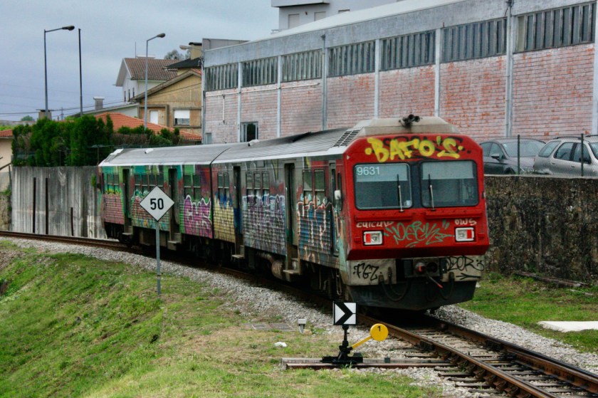 Aside from the hideous graffiti, which really needs to be dealt with, the Vouga system is a delightful railway to spend a couple of days travelling. The route is very scenic in parts and the trains seem completely devoid of tourists, CP fares are very modest and Espinho is a pleasant place to stay, with a number of very fine seafood restaurant just yards from my seafront apartment (Guest House A&Z – highly recommended).